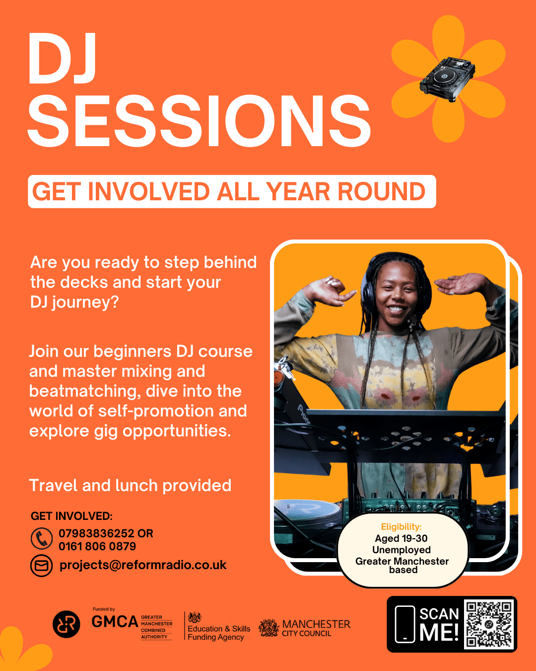 Our acclaimed DJ Sessions are one of the most popular free creative courses at Reform throughout the year. Over the course of the project, participants get hands-on experience in the likes of beat-matching, self-promotion and sourcing gig opportunities.